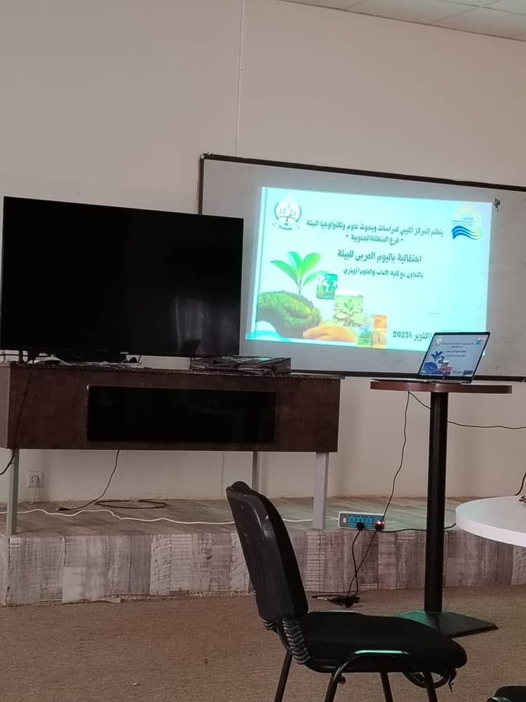 أقام المركز الليبي لدراسات وبحوث علوم وتكنولوجيا البيئة فرع المنطقة الجنوبية اوباري بالتعاون مع كلية الآداب والعلوم اوباري احتفالية بمناسبة اليوم العربي للبيئة الذي يصادف 14 أكتوبر.. حيث القيت محاضرة تعريفية بهذا اليوم تخللها حلقة نقاش حول أهمية البيئة والمحافظة عليها.